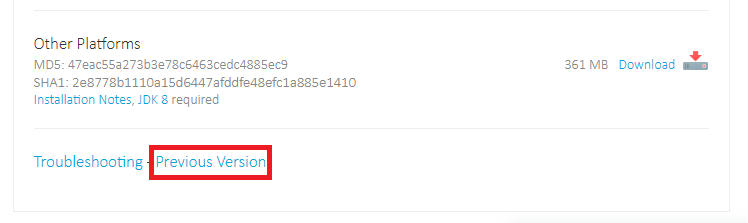 2. 스크롤을 내려 Previous Version 클릭하여 18.1 버전으로 이동